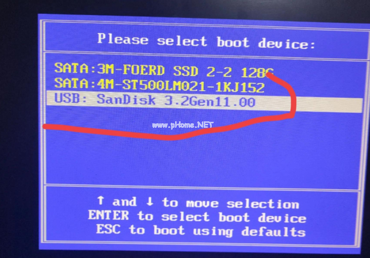 5、u盤啟動(dòng)可直接使用啟動(dòng)快捷鍵,開機(jī)不停按住快捷鍵,就可進(jìn)入選擇界面,移動(dòng)光標(biāo)至u盤選項(xiàng),回車即可。