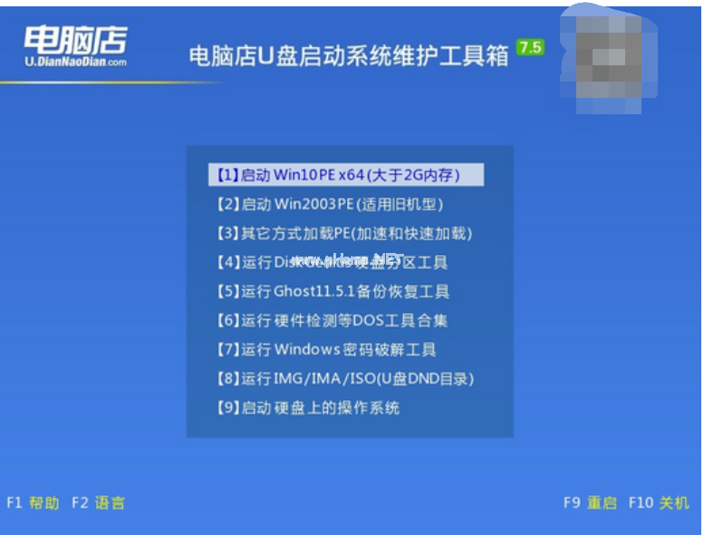 6、隨后就會(huì)進(jìn)入到電腦店winpe界面,選擇第一項(xiàng)回車即可進(jìn)入PE系統(tǒng)。
