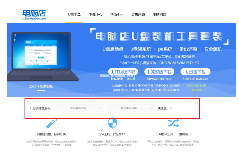 1、首先搜索進(jìn)入電腦店的官網(wǎng),點(diǎn)擊【下載中心】,然后點(diǎn)擊下載u盤啟動(dòng)盤制作工具。