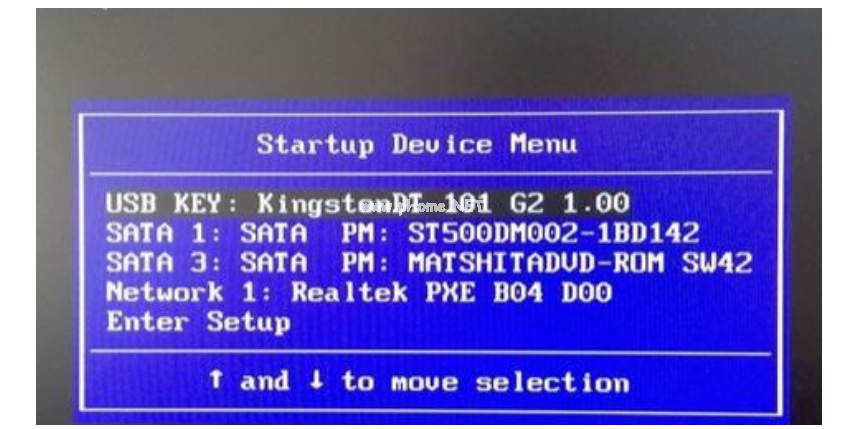 4、在電腦上插入U盤,重啟電腦后不停按F12、F11或Esc等按鍵,在彈出的啟動菜單中選擇U盤選項。