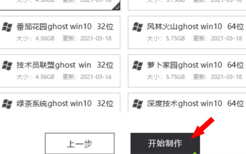 4、選擇我們需要安裝的系統(tǒng),然后選擇需要的版本然后點(diǎn)擊"開(kāi)始制作"即可;