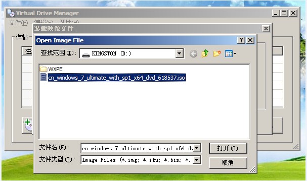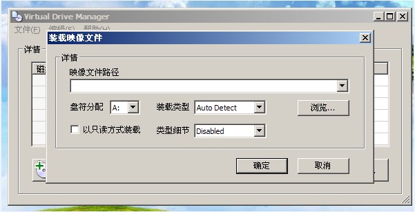 6、裝載映像文件:點擊裝載,找到你的U盤上的ISO文件,路徑瀏覽記住虛擬盤符為A,確定后,最小化放在任務欄邊