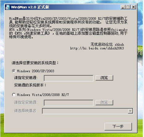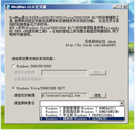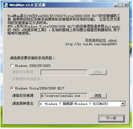 7、我們雙擊WINDOWS安裝器Winsman,選擇第二項Windows Vista/2008/2008R2/7