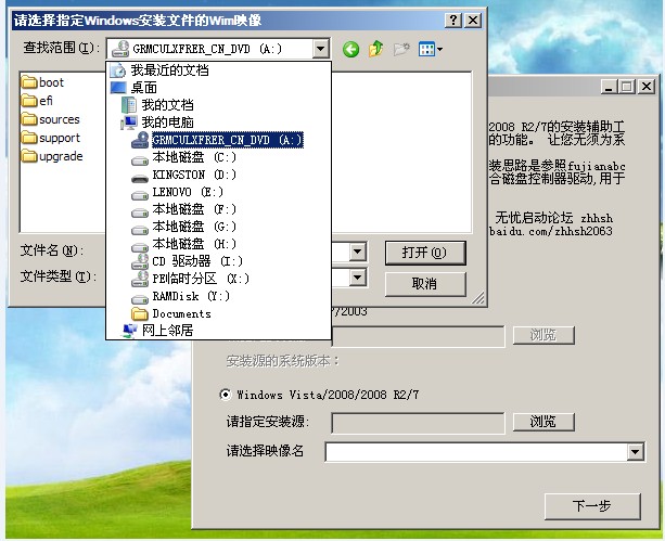 8、點擊瀏覽:記住我們已經將ISO文件裝載入了A盤里