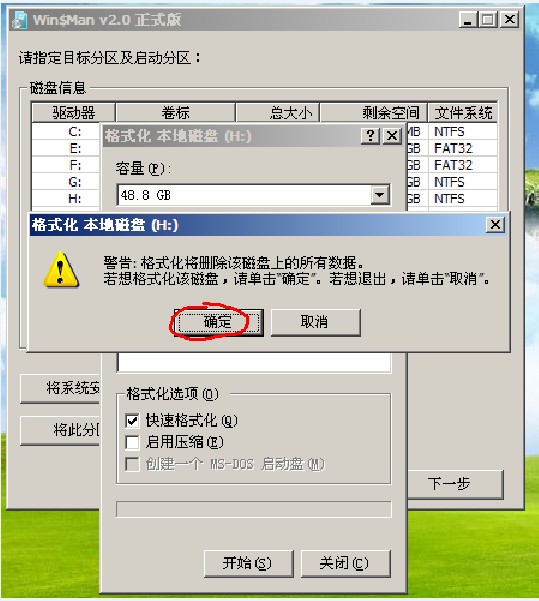 13、點擊格式化后,再次點擊將系統(tǒng)安裝你剛才選中的盤符