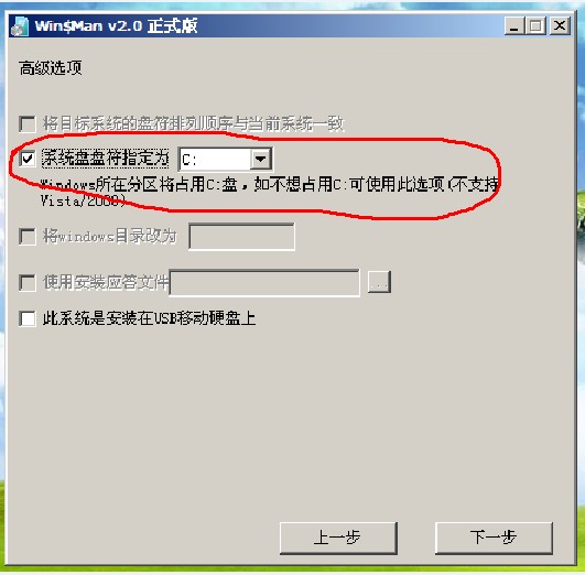 15、點擊將系統(tǒng)盤符指定為C,點擊下一步