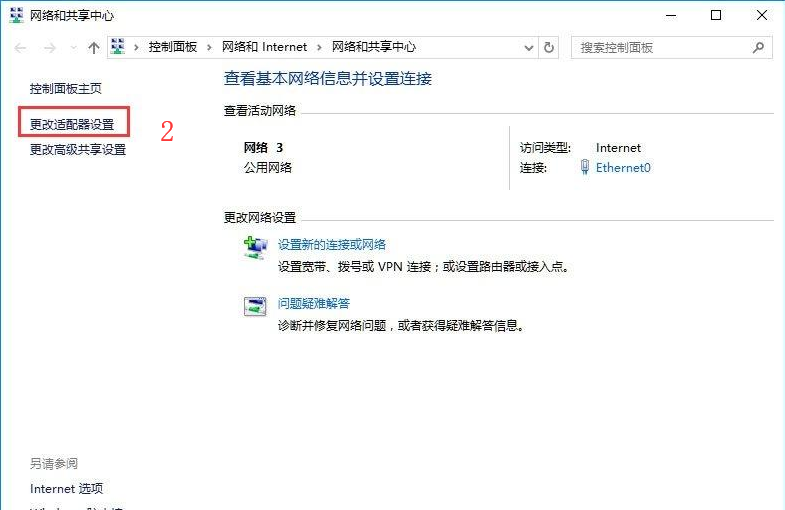 2.在打開(kāi)的網(wǎng)絡(luò)和共享中心界面的左側(cè)找到并點(diǎn)擊打開(kāi)更改適配器設(shè)置,進(jìn)入下一步。