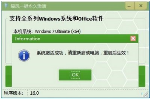 4、激活完畢就會(huì)出現(xiàn)以下的圖,重啟電腦就會(huì)激活啦。