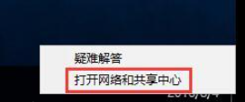 3、鼠標(biāo)右鍵點(diǎn)擊桌面右下角網(wǎng)絡(luò)圖標(biāo),選擇“打開網(wǎng)絡(luò)和共享中心”。
