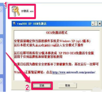 3、XP激活工具彈出窗口,點(diǎn)擊“安裝”