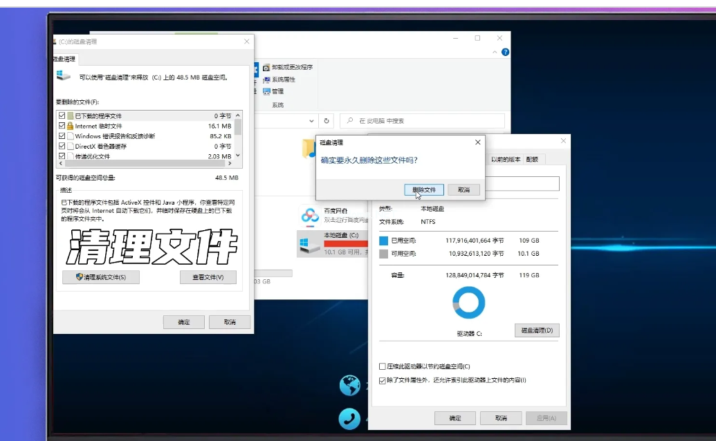 5、單擊確定,開始清理文件即可清理磁盤空間。