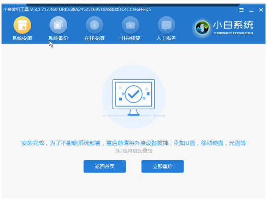 9.系統(tǒng)安裝完畢之后將U盤(pán)拔出,重新啟動(dòng)。