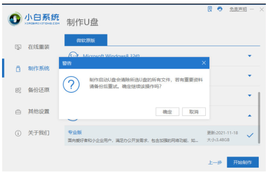 3.制作U盤(pán)啟動(dòng)盤(pán)之前,備份好U盤(pán)里數(shù)據(jù),點(diǎn)確定。
