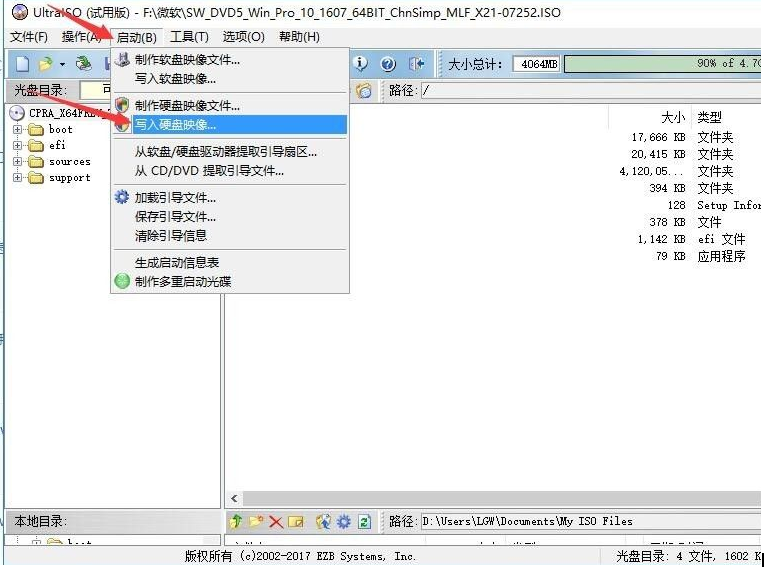 3、打開系統(tǒng)鏡像文件之后,點(diǎn)擊【啟動】>【寫入硬盤映像】。