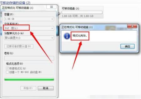 4.當(dāng)出現(xiàn)以上錯(cuò)誤提示時(shí),由于大面板壞道的產(chǎn)生,導(dǎo)致U盤可用容量減少,因此只能使用“Fat”文件系統(tǒng)來格式化U盤。