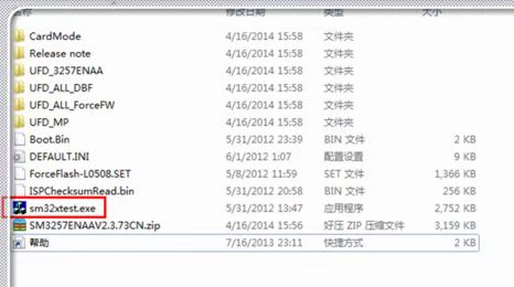 2、解壓之后,點(diǎn)擊“sm32xtest.exe”,運(yùn)行量產(chǎn)工具。