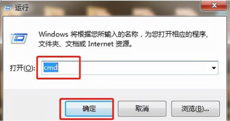 第一步:按下win+R調(diào)出運(yùn)行窗口,開始輸入“cmd”命令回車打開命令提示符。