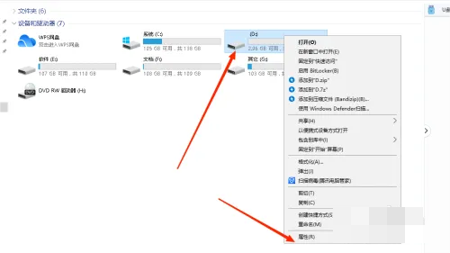 進入我的電腦,找到自己的U盤右擊屬性。