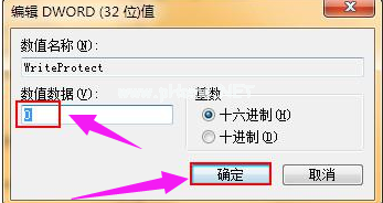 5.鼠標(biāo)雙擊打開WriteProtect,把數(shù)值數(shù)據(jù)改為“0”,點(diǎn)擊“確定”即可。完成以上操作后,關(guān)閉注冊(cè)表編輯器,重啟電腦之后將U盤插入電腦,就可以開始正常使用了。