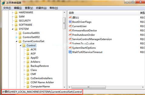2.進(jìn)入“注冊(cè)表編輯器”界面之后,按序打開以下文件夾打開“HKEY_LOCAL_MACHINE-SYSTEM-CurrentControlSet-Control”。