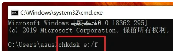 2、在彈出命令提示窗口中,鍵入“chkdsk 驅(qū)動(dòng)器字母:/f”;