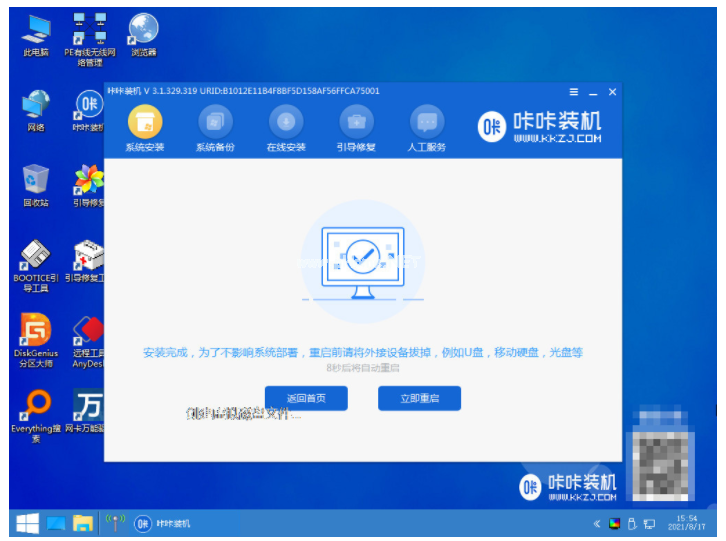 6、系統(tǒng)安裝完成之后,雙擊“立即重啟”將電腦進(jìn)行重啟的操作。